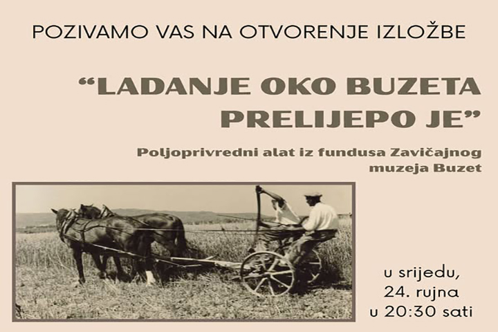 View Larger Image Izložba “Ladanje oko Buzeta prelijepo je” By poubuzet|2025-09-24T09:20:55+02:0024 rujna, 2025|Izložba|0 komentara Pozivamo Vas u Zavičajni muzej na otvorenje izložbe “Ladanje oko Buzeta prelijepo je” i druženje uz prigodan domjenak. Radi se o izložbi poljoprivrednog alata i pribora, te fotografija iz fundusa našega muzeja. Dobro nam došli! Prikaži povezane objave MARIANA BAN: POTRAGA PREMA SJEVEROZAPADU MARIANA BAN: POTRAGA PREMA SJEVEROZAPADU LEON VIDOVIĆ: “TERRA TONDA” LEON VIDOVIĆ: “TERRA TONDA” Lea Labrović: “Ja, dijete” Lea Labrović: “Ja, dijete” Doria Valković: “Okusi”, Izložba Doria Valković: “Okusi”, Izložba Svi naši PINELI I KOKTELI Svi naši PINELI I KOKTELI Božićna i novogodišnja izložba Božićna i novogodišnja izložba Pozivnica Pozivnica Lica Subotine po starinski – Izložba Lica Subotine po starinski – Izložba
